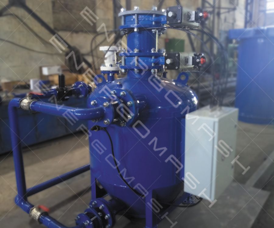 Согласно требований технического эадания необходимо было спроектировать систему пневмотранспорта для перегрузки сухой графитовой и угольной пыли, а также угольной крупки, фракцией  до 0,5 мм. Дальность транспортировки составляла не более 120 метров по горизонтали и 50 метров по вертикали. Значения температуры и давления имели номинальные значения. Для решения этого задания были изготовлены стандартные пневмокамерные насосы серии NPK – mini, а также комплект рукавных фильтров с пневматической очисткой для силоса. Использование насосов серии NPK – mini позволило выполнить все требования и вписаться в заданные геометрические размеры.