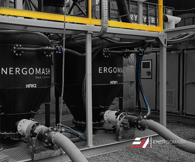 Нагнетательный модуль спроектирован на базе пневмокамерных насосов серии MP doble/TWIN в зависимости от режима и материала перегрузки (цемент, д. смеси, горные породы/сахар, минеральные удобрения и др.). Установка сразу двух емкостей позволяет достигать высокой производительности 200+ т/ч и обеспечивает непрерывный процесс перегрузки.