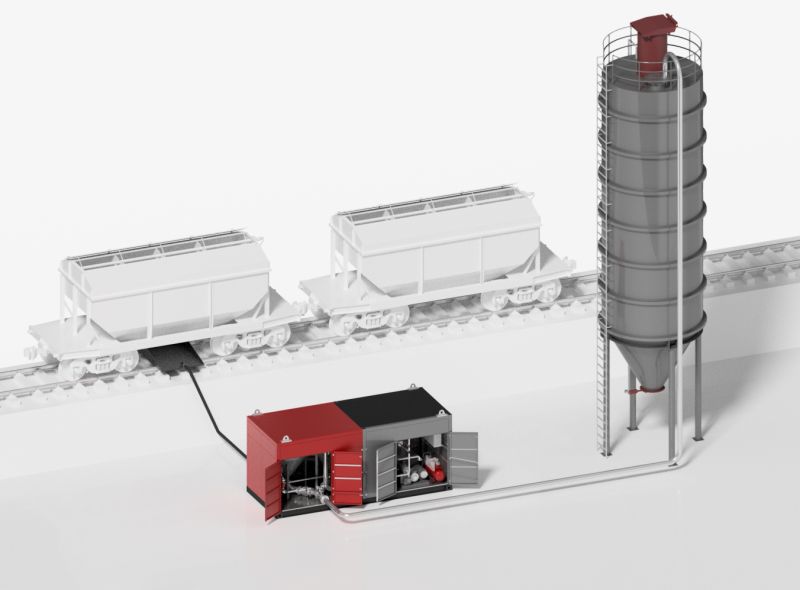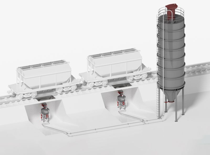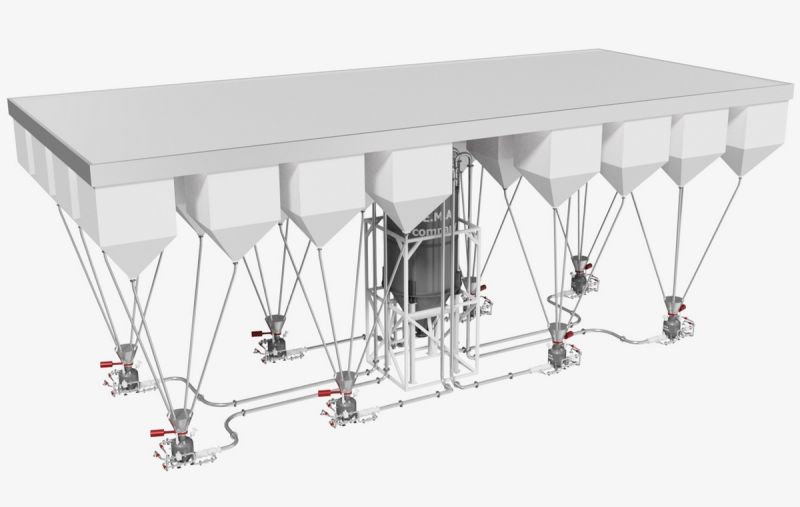 За умови наявності значної відстані між електрофільтрами та бункером зберігання матеріалу, а також для забезпечення максимальної ефективності та надійності системи процес транспортування матеріалу розділений на 2 основні етапи: